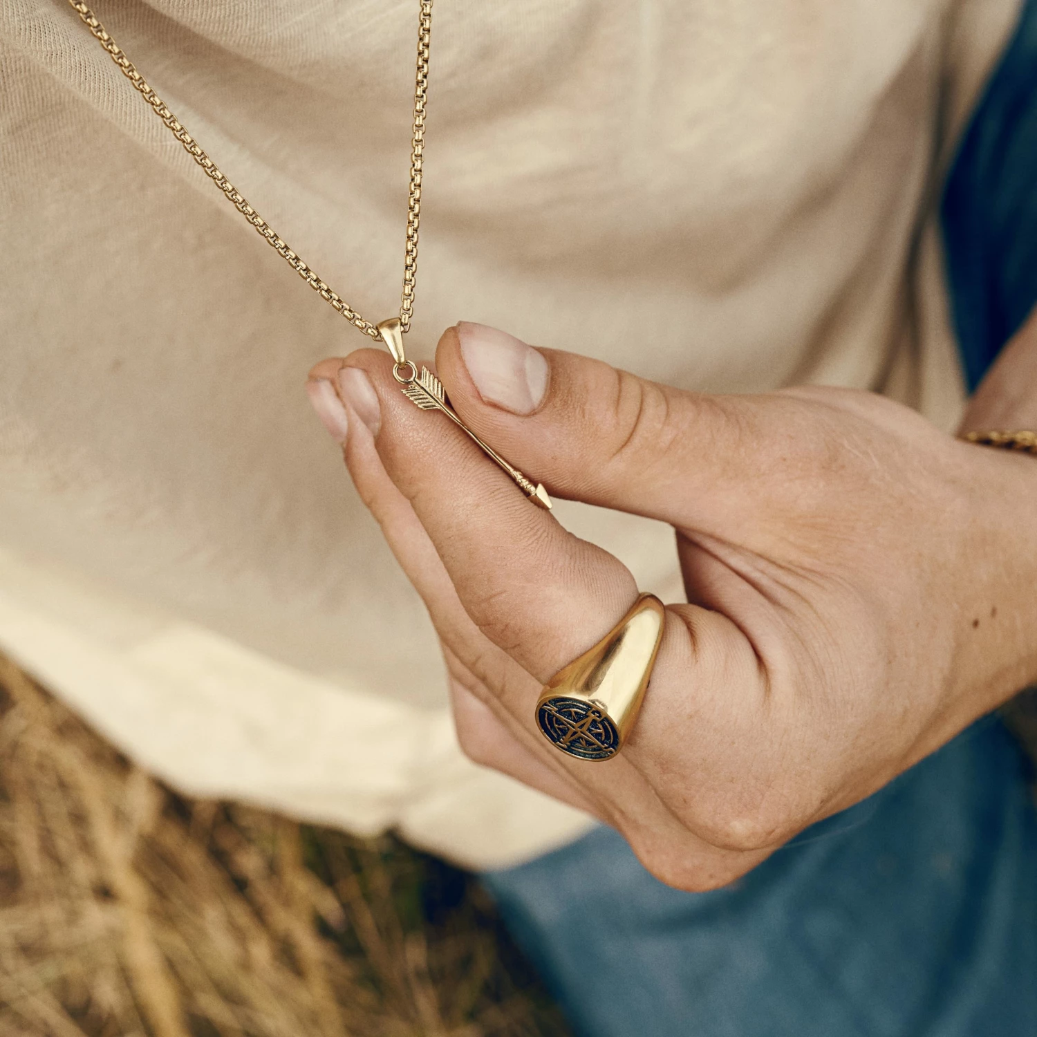 Tous deux fabriqués en acier inoxydable chirurgical, le pendentif comme la chaîne sont résistants aux rayures et au ternissement. Le collier est protégé par un revêtement en PVD doré formant une couche ultra-fine et ultra-résistante à la surface de l’acier. Une combinaison durable dont vous pourriez avoir besoin lors de vos voyages.