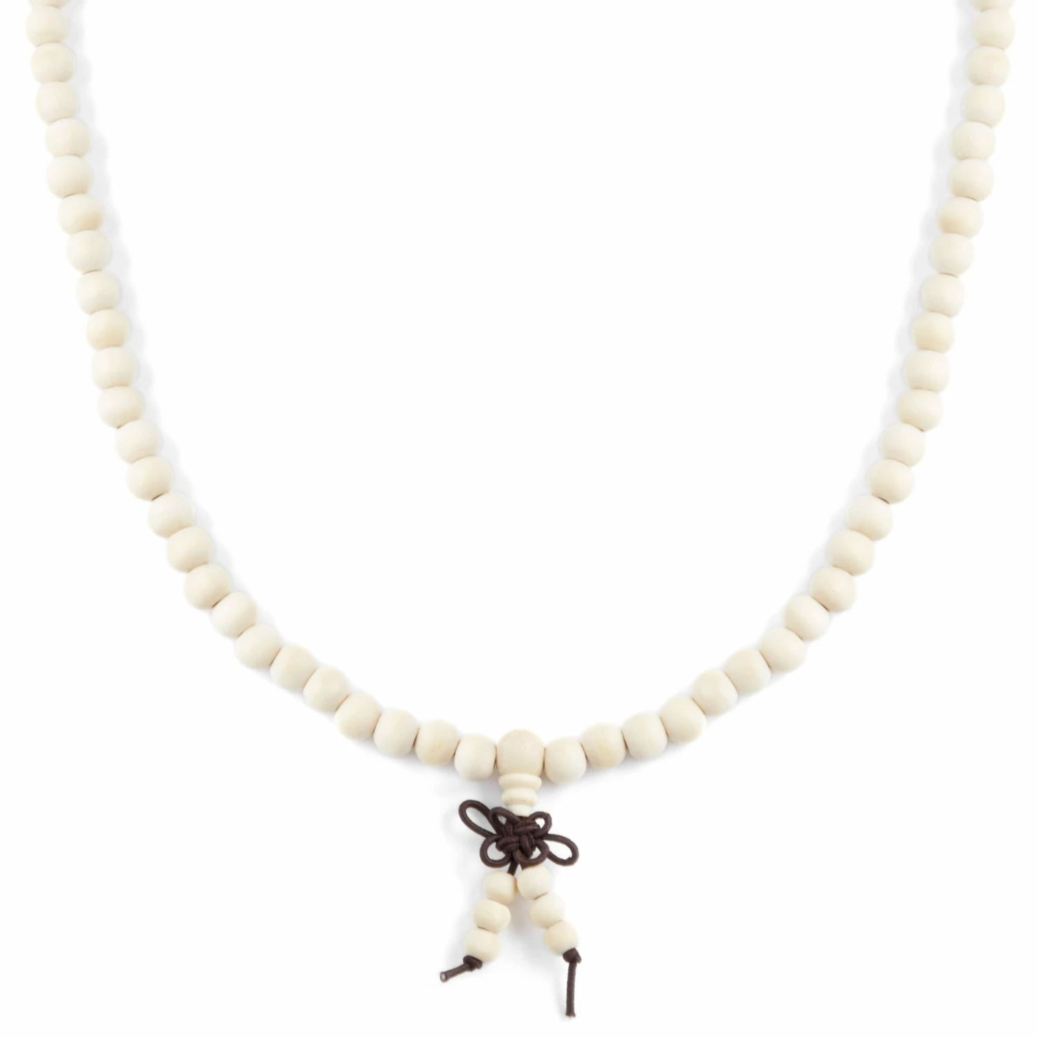 Ce collier est composé d’une série de perles en bois de couleur blanc crème disposée sur un cordon élastique très résistant.