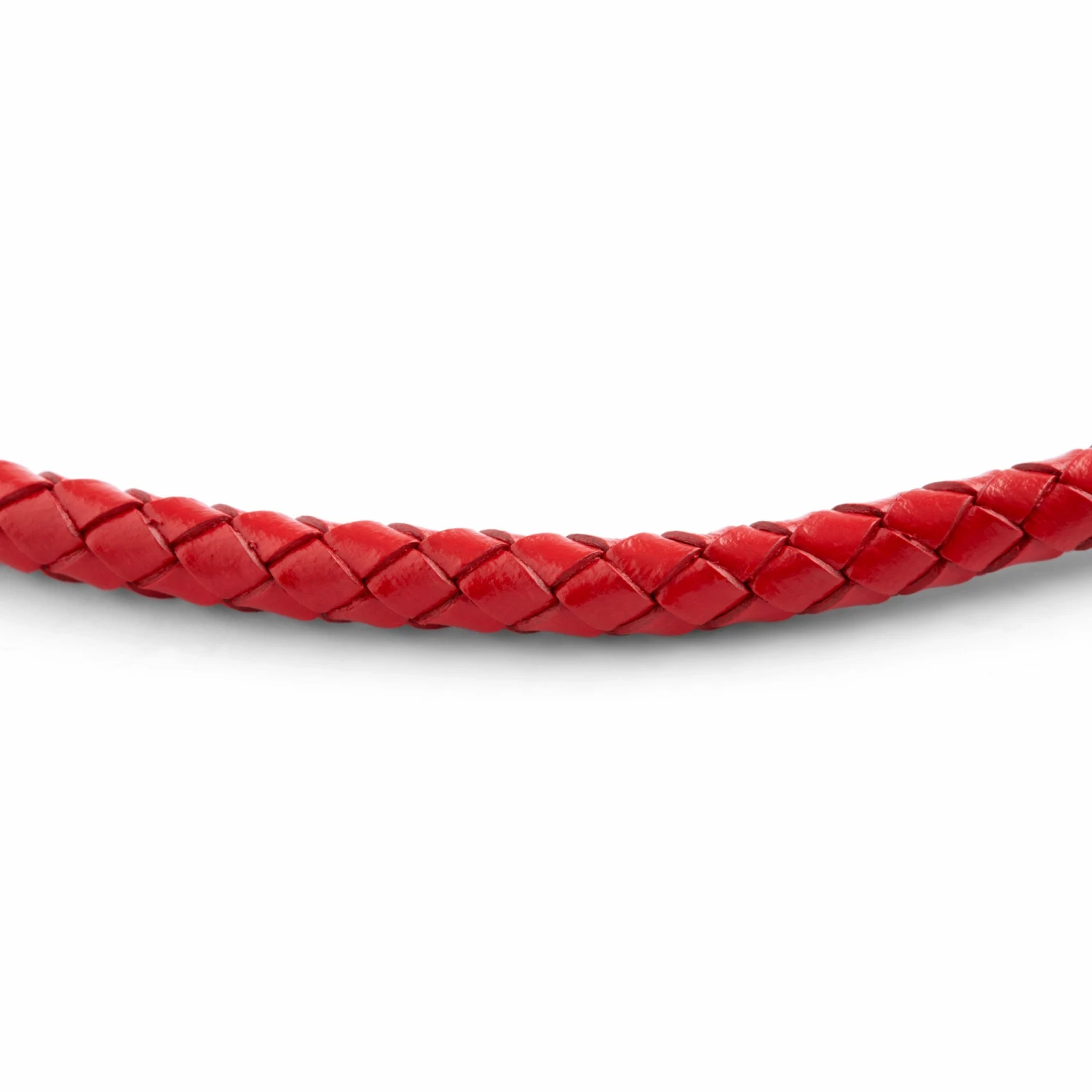 Un accessoire de grande taille en véritable cuir naturel tressé de couleur rouge, ce collier gagnera en beauté au fil du temps qui passe, se patinant harmonieusement en fonction de l’usage que vous en ferez.