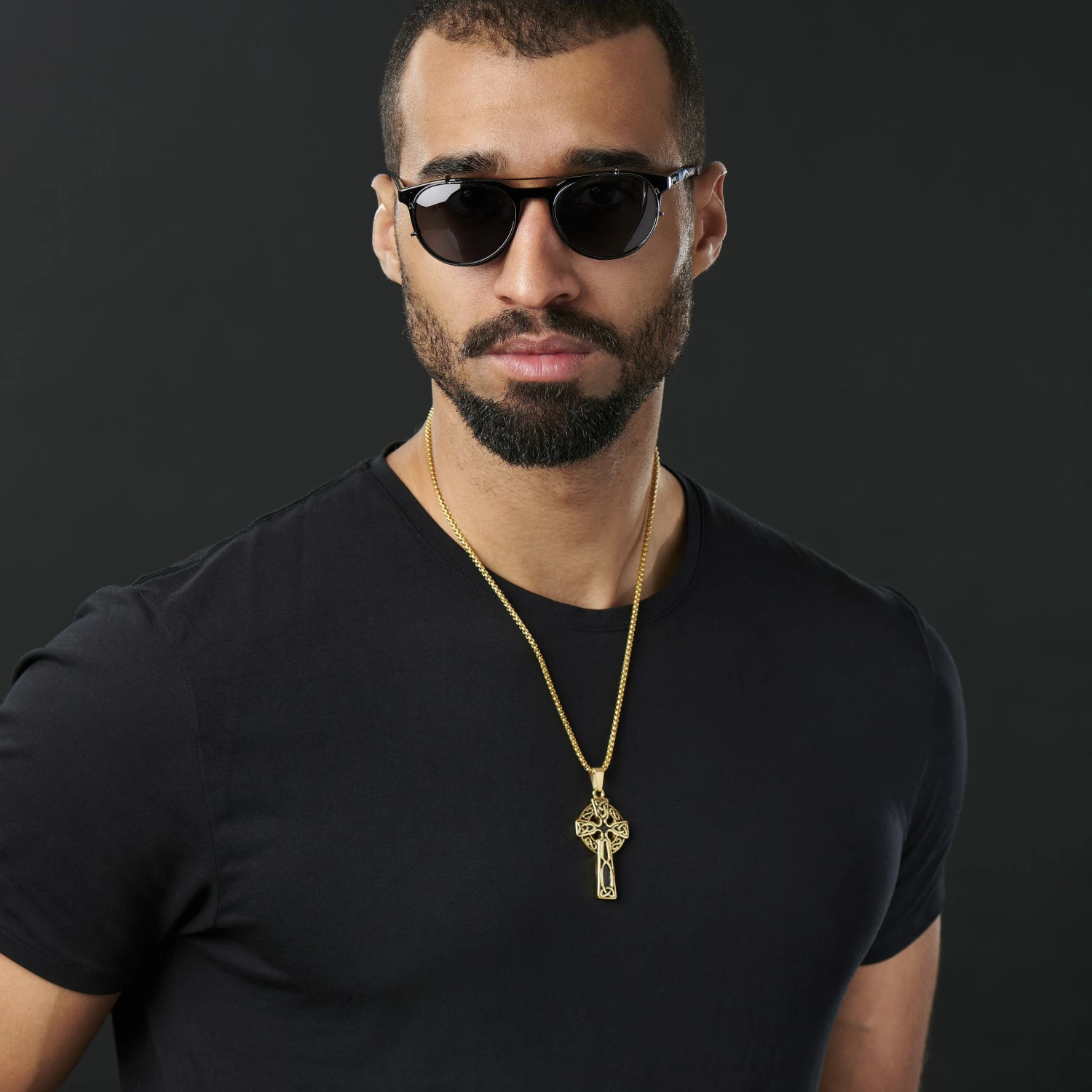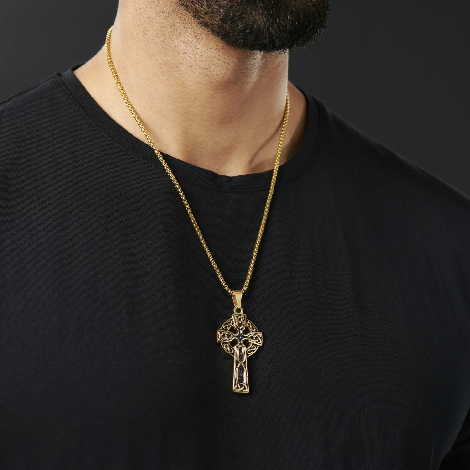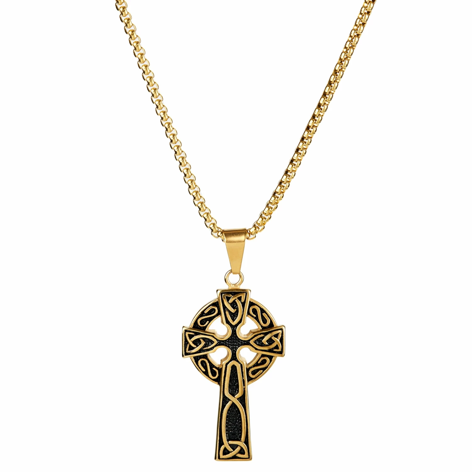La croix celtique, à l’origine un mystérieux symbole originaire d’Irlande jouit désormais d’une renommée mondiale. Ce pendentif a été fabrique en acier inoxydable et décoré de détails de finition de couleur dorée qui lui confèrent un look très contemporain.
