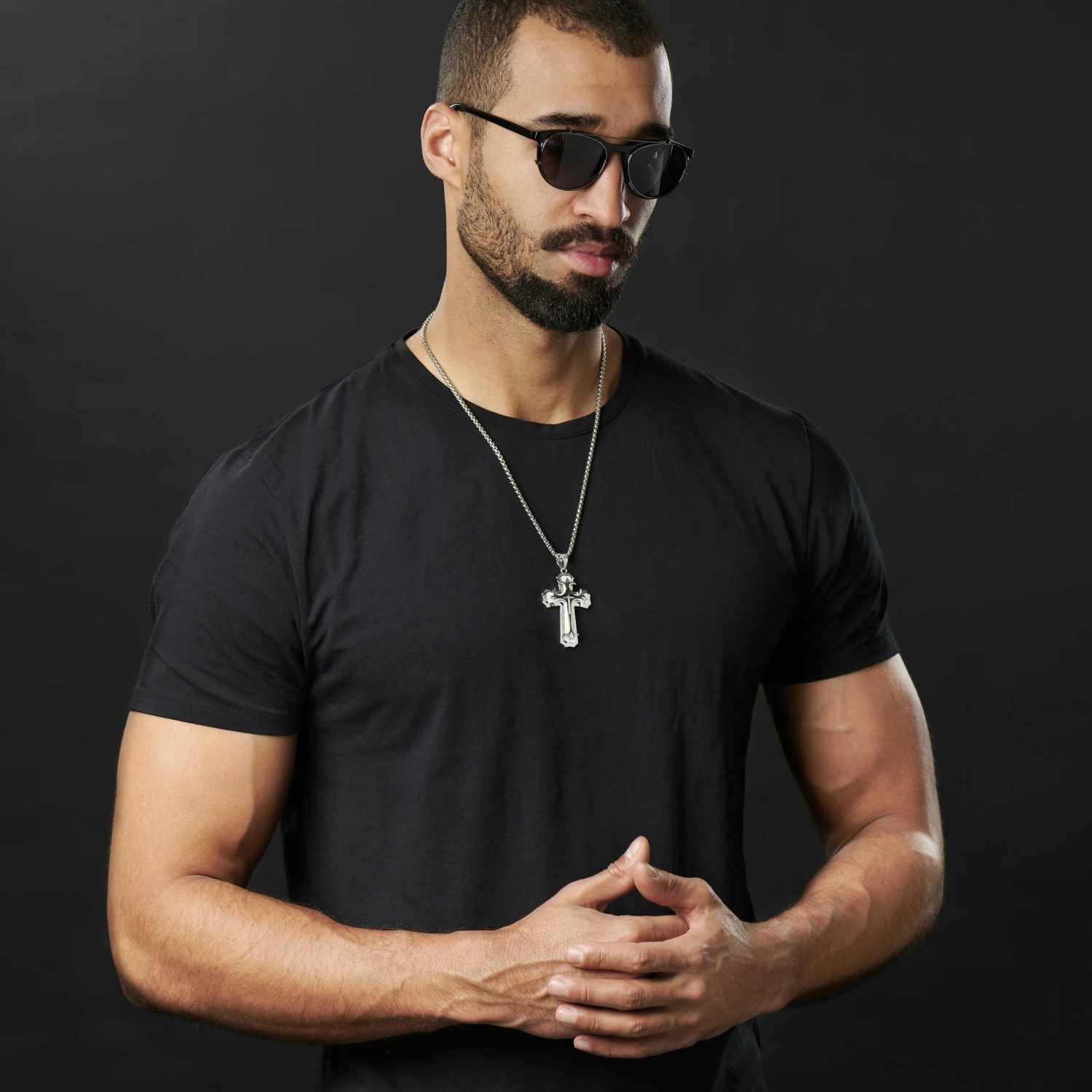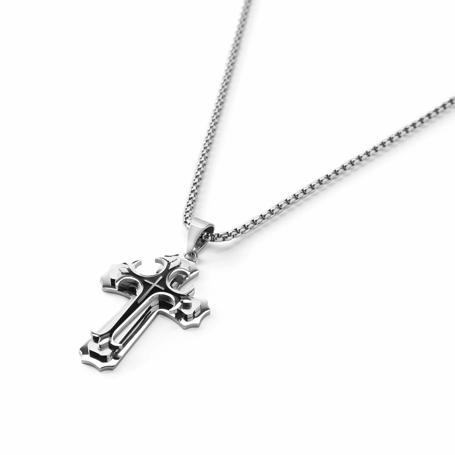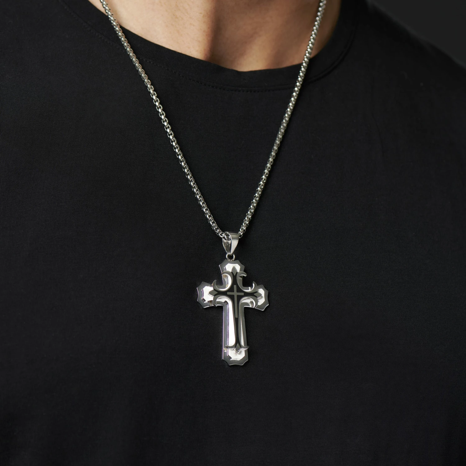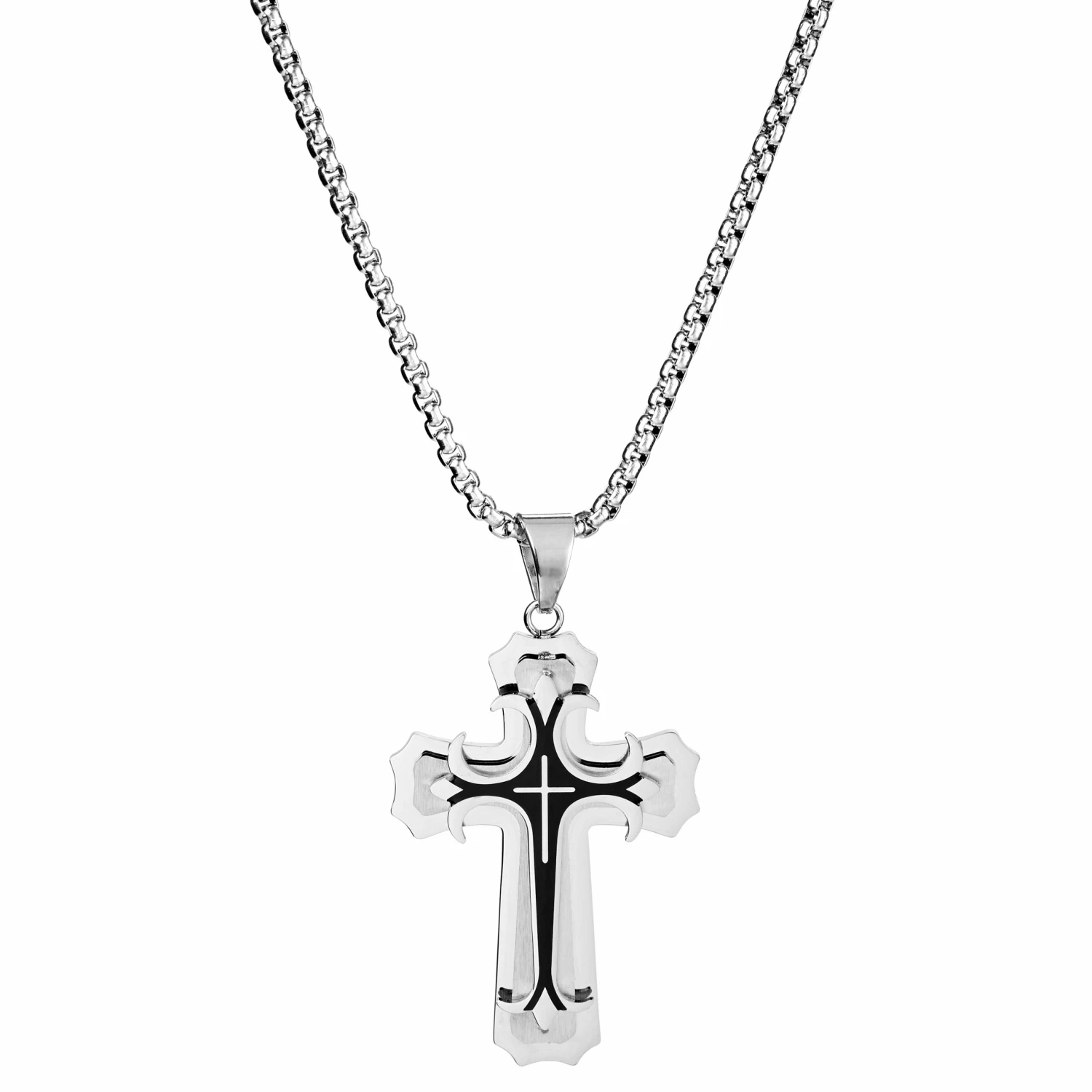 Ce pendentif en forme de croix de Saint-Thomas (également connue sous le nom de croix persane) est constitué de 3 couches d’acier inoxydable robuste soigneusement agencées pour lui procurer un look tridimensionnel. Deux finitions d’acier différentes permettent de mettre en valeur la partie centrale noire en offrant un élégant contraste.