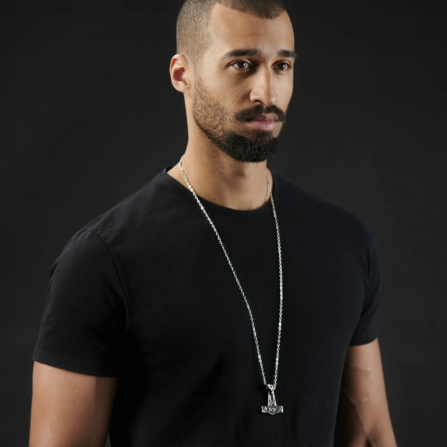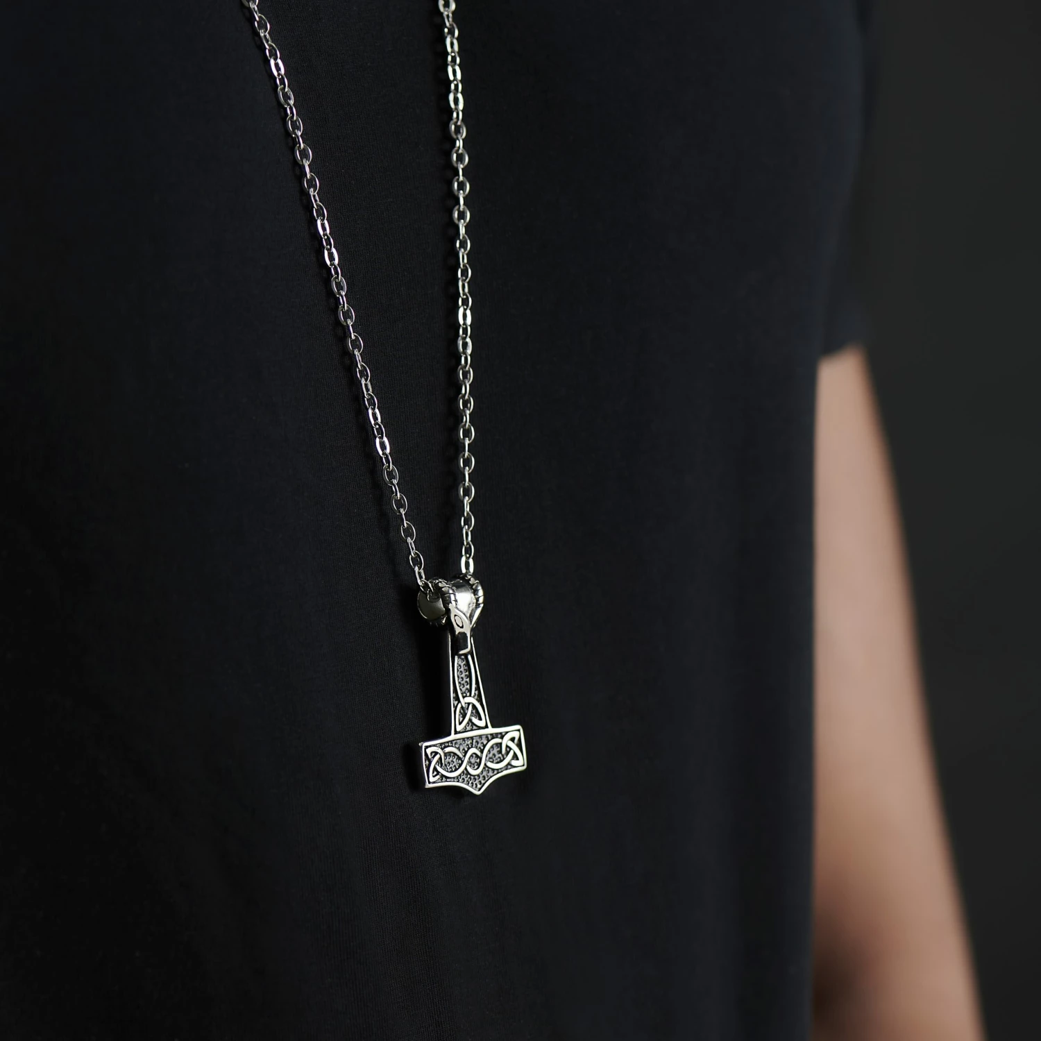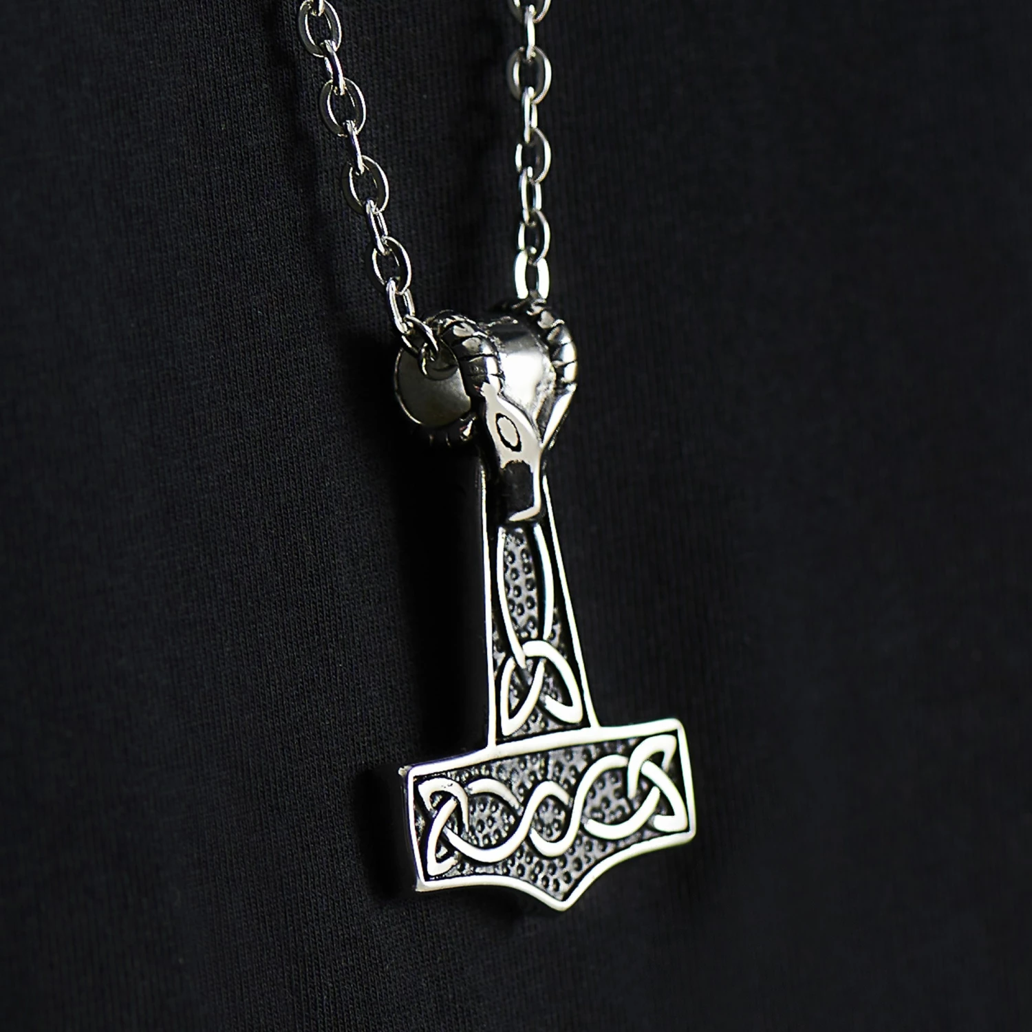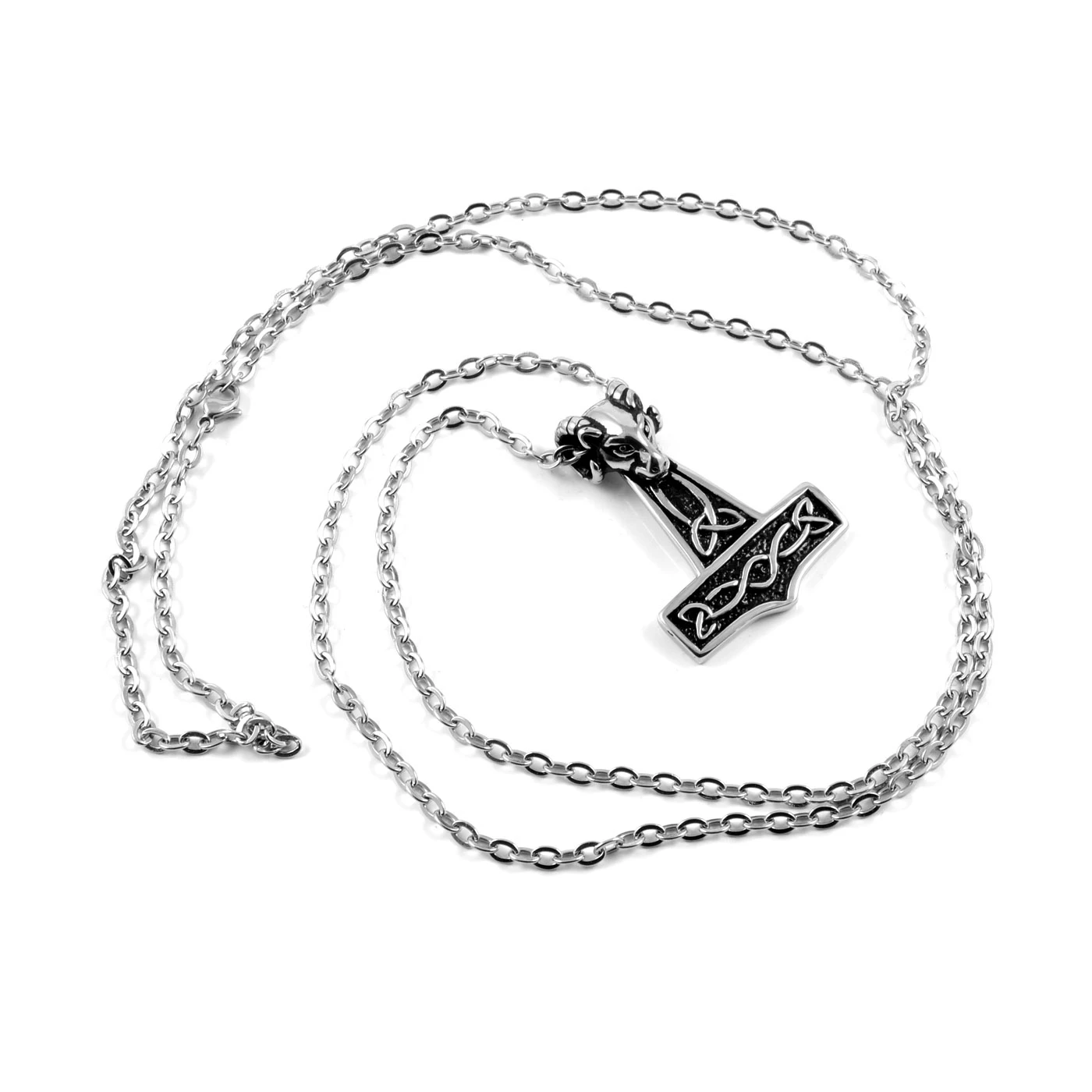 Exerce le pouvoir des dieux avec ce superbe collier. Inspiré par la légende nordique, il présente un pendentif en marteau de Thor avec une tête de bélier au-dessus.
