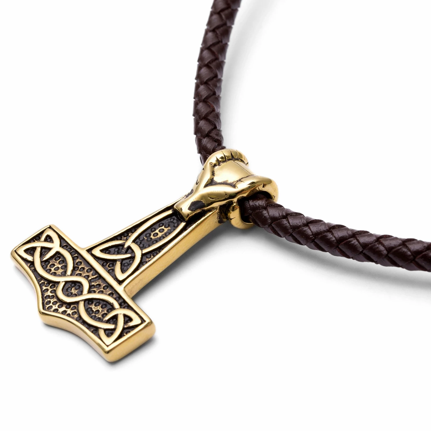 Un magnifique accessoire devrait faire partie intégrante de toute collection de bijoux pour homme digne de ce nom. Ce collier en cuir marron est serti d’un pendentif marteau de Thor dont le sommet à la forme d’une tête de bélier et est parcouru d’un motif celtique. Un look très original pour un design très robuste.