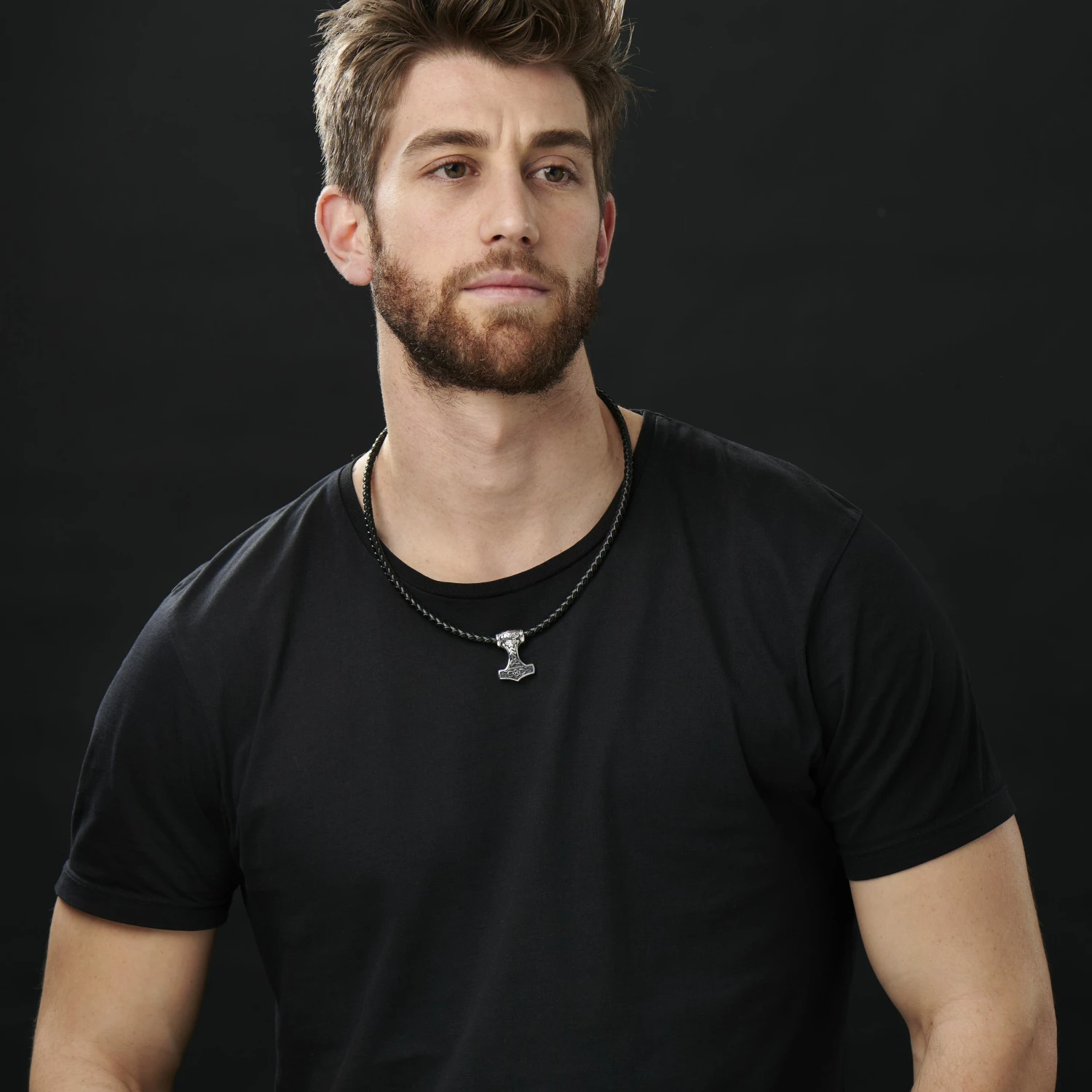 Ce magnifique collier va transformer votre look de correct à carrément top. Un cordon en cuir noir associé à un pendentif en acier inoxydable symbole marteau de Thor, pour un bijou très masculin et mystérieux.