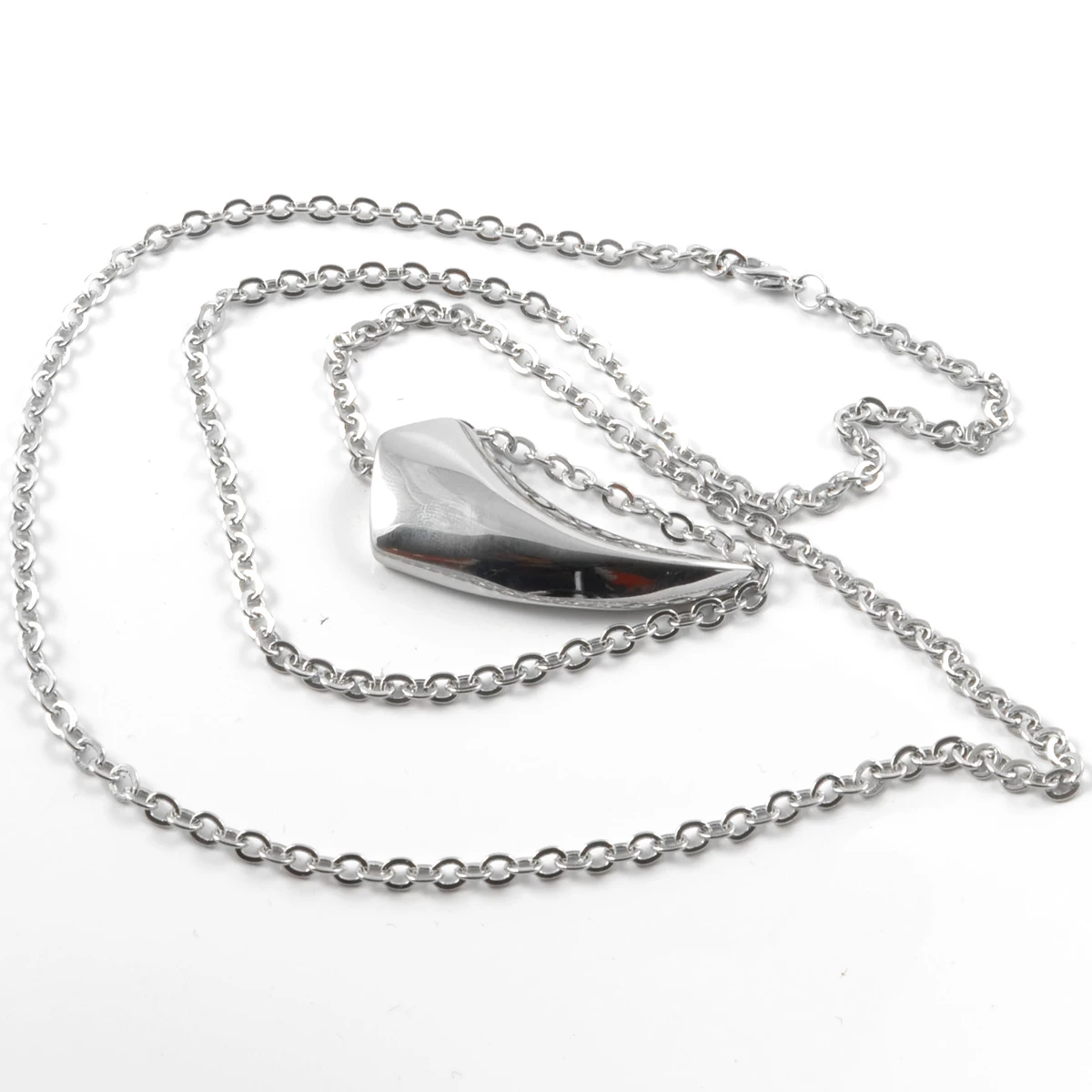 Un croc imposant et tranchant fabriqué d’acier inoxydable pend sur une chaîne ajustable. Intimidant!