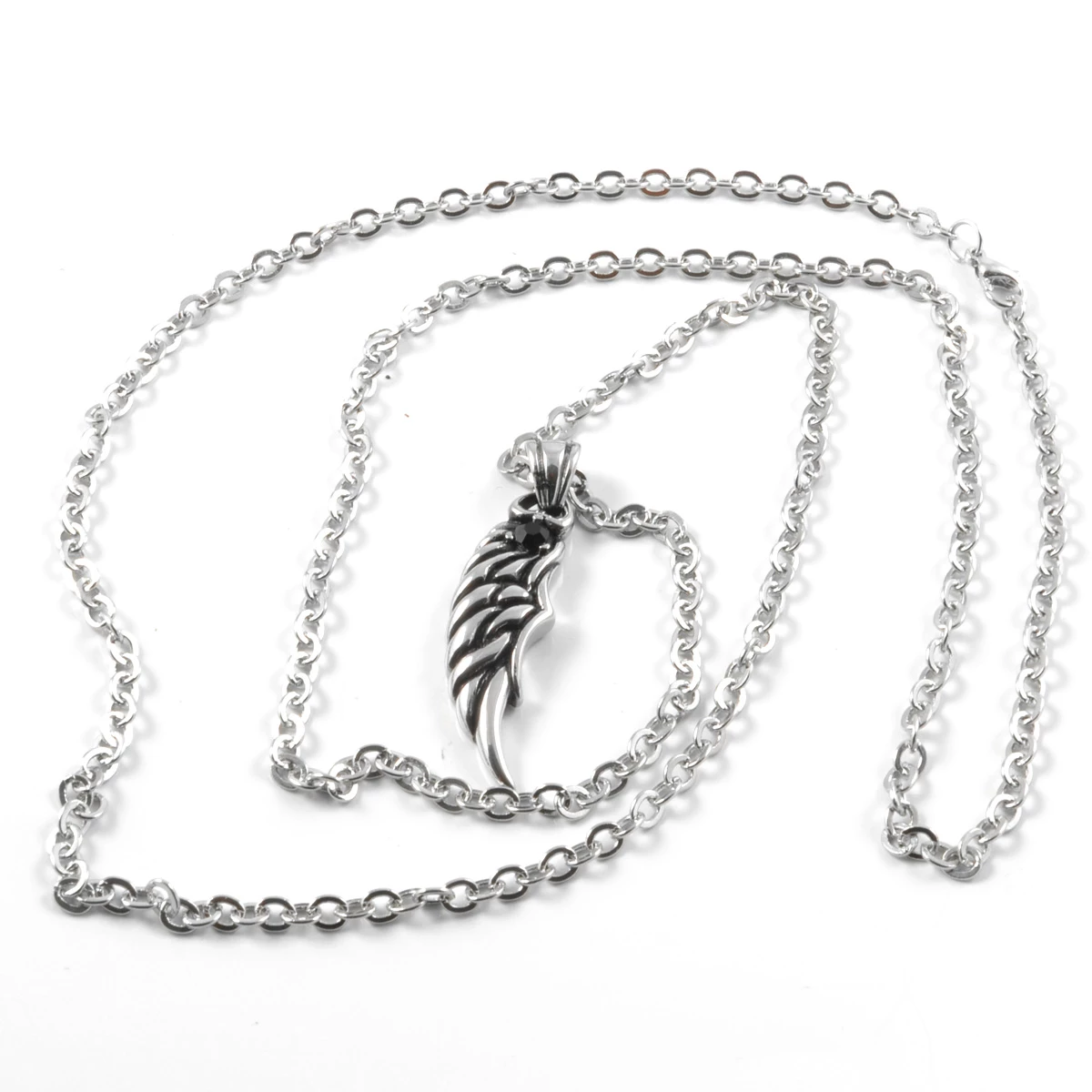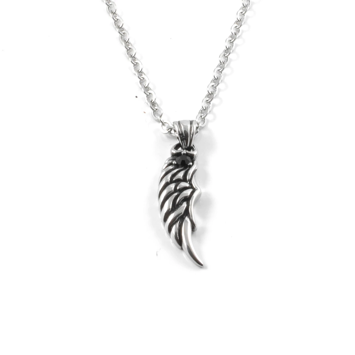Collier en acier inoxydable avec pendentif en forme d’aile.