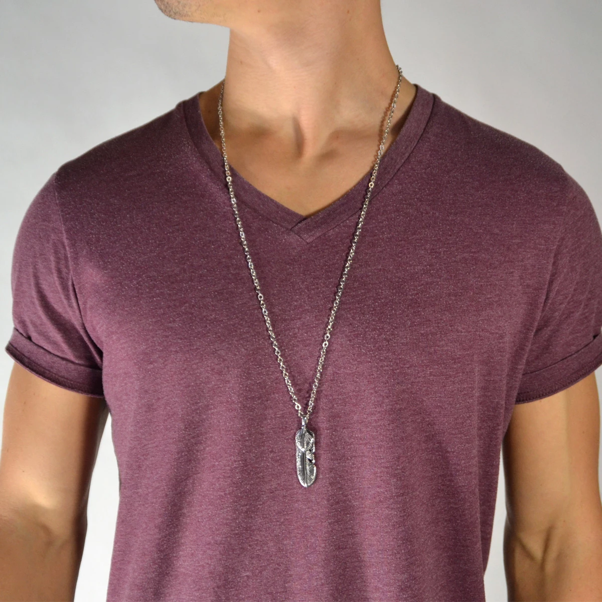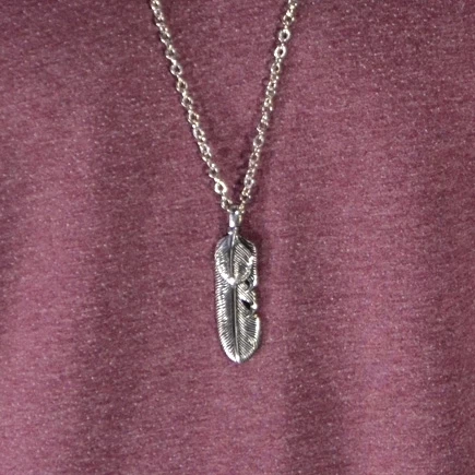 Un collier au pendentif unique en forme de plume.
