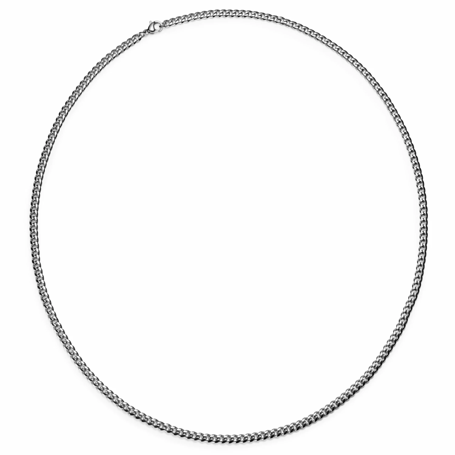 Que diriez-vous de cet élégant collier à mailles gourmette en acier inoxydable argenté. Durable, stylé et facile à mettre en place grâce à son fermoir mousqueton.