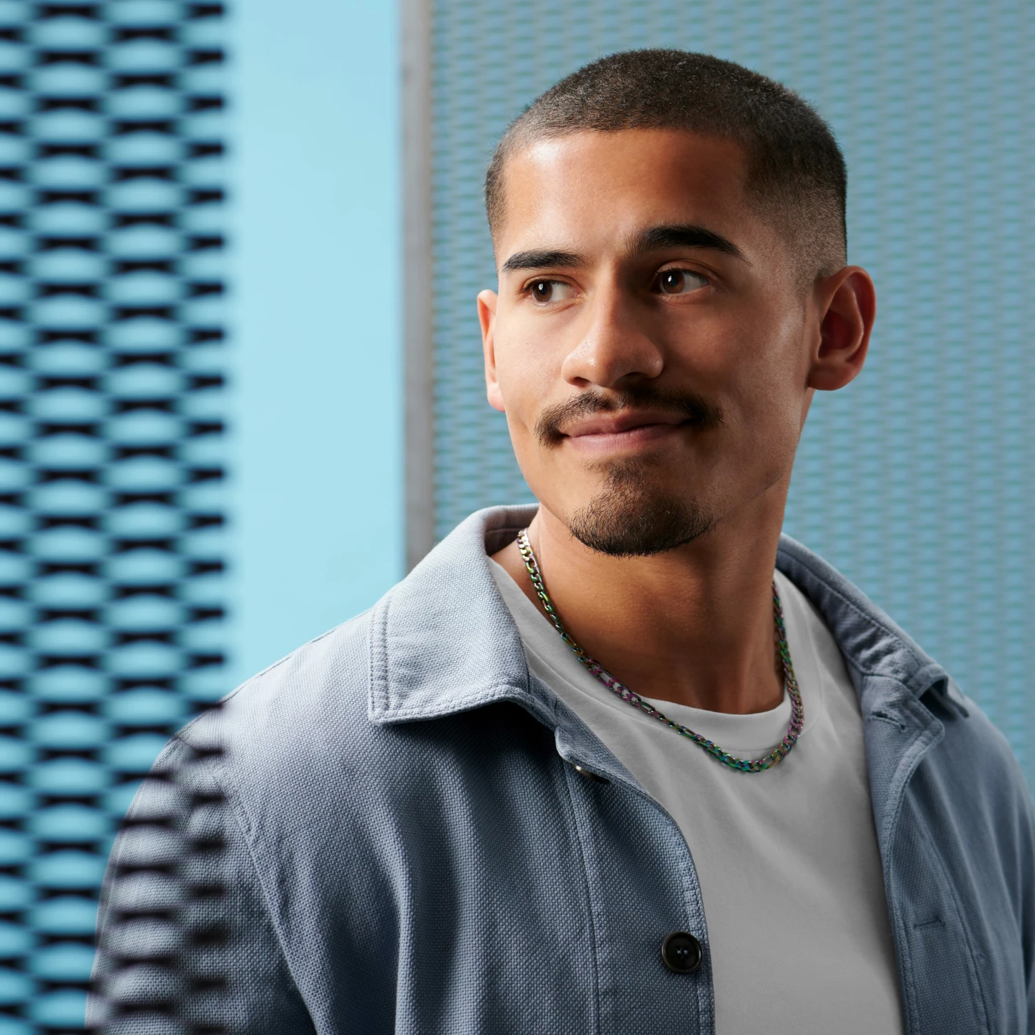 Avec ses maillons multicolores, cette chaîne Figaro couleur arc-en-ciel pour homme ne manquera pas de se faire remarquer.