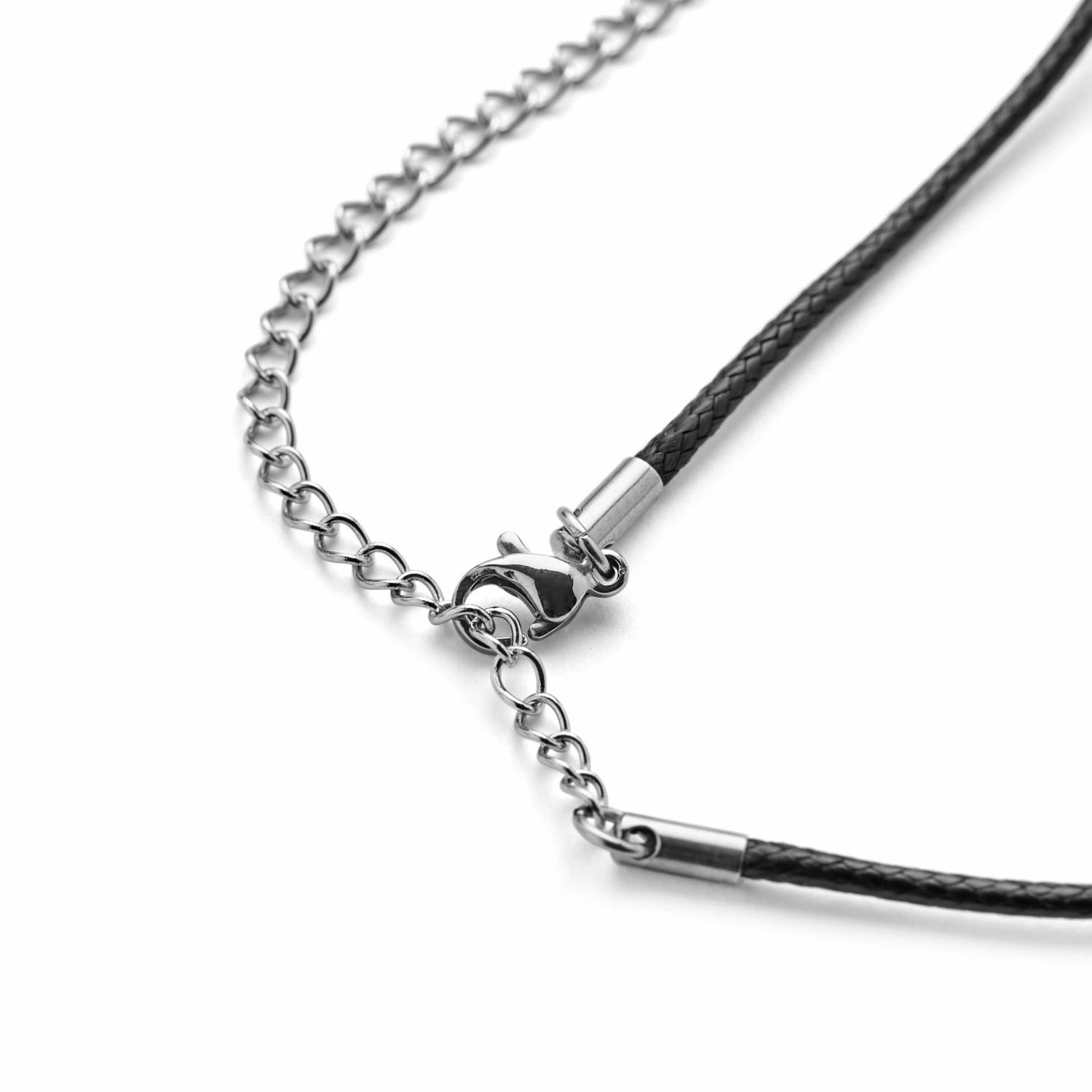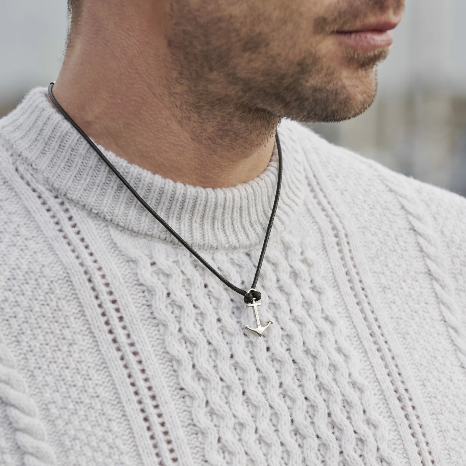 Fabriqué en acier inoxydable poli, ce pendentif de petite taille est suspendu à un cordon en coton ciré sécurisé à l’aide d’un fermoir mousqueton. .