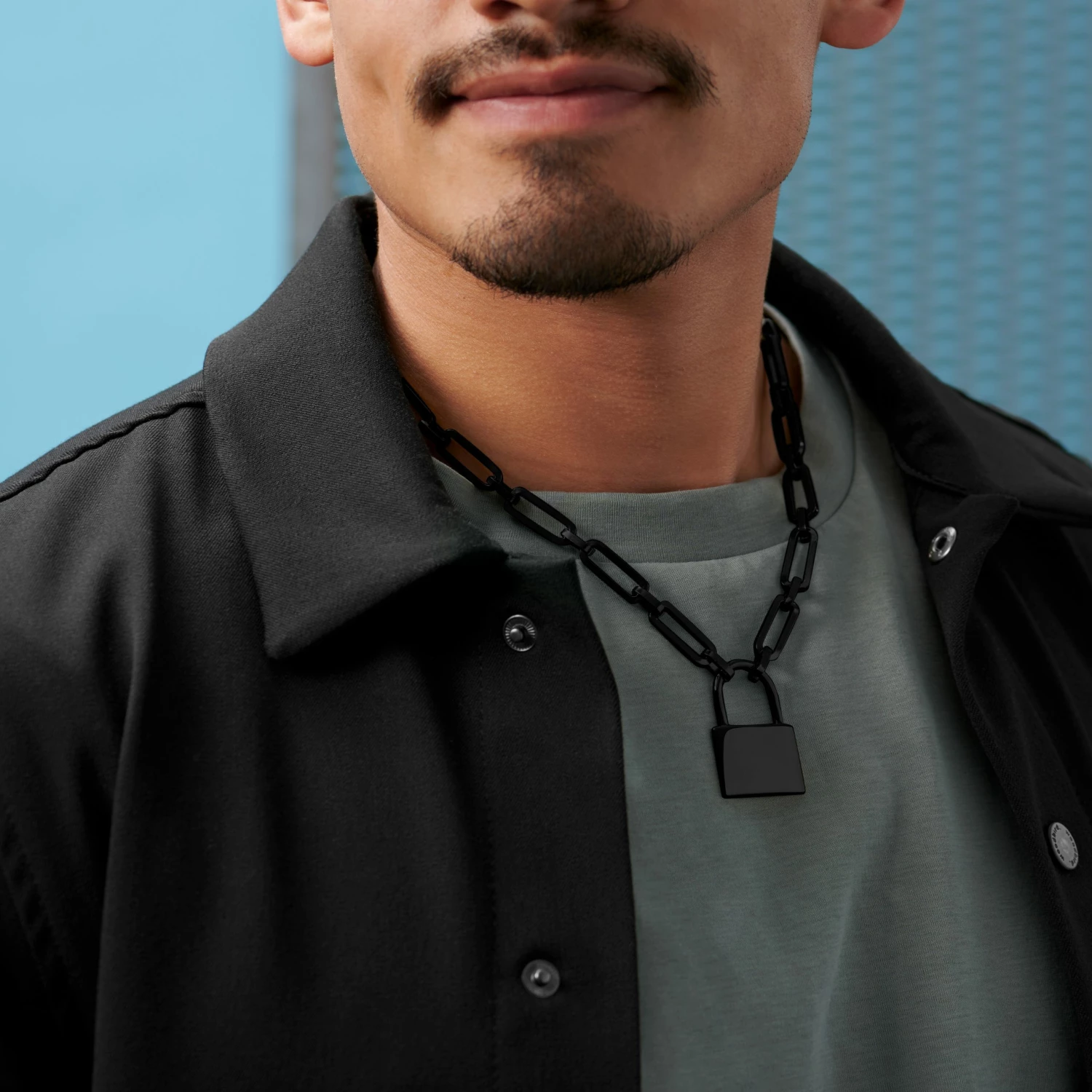 Un collier en acier inox de couleur gris foncé gunmetal au look très viril, parfait pour être porté seul ou accompagné d’autres colliers.