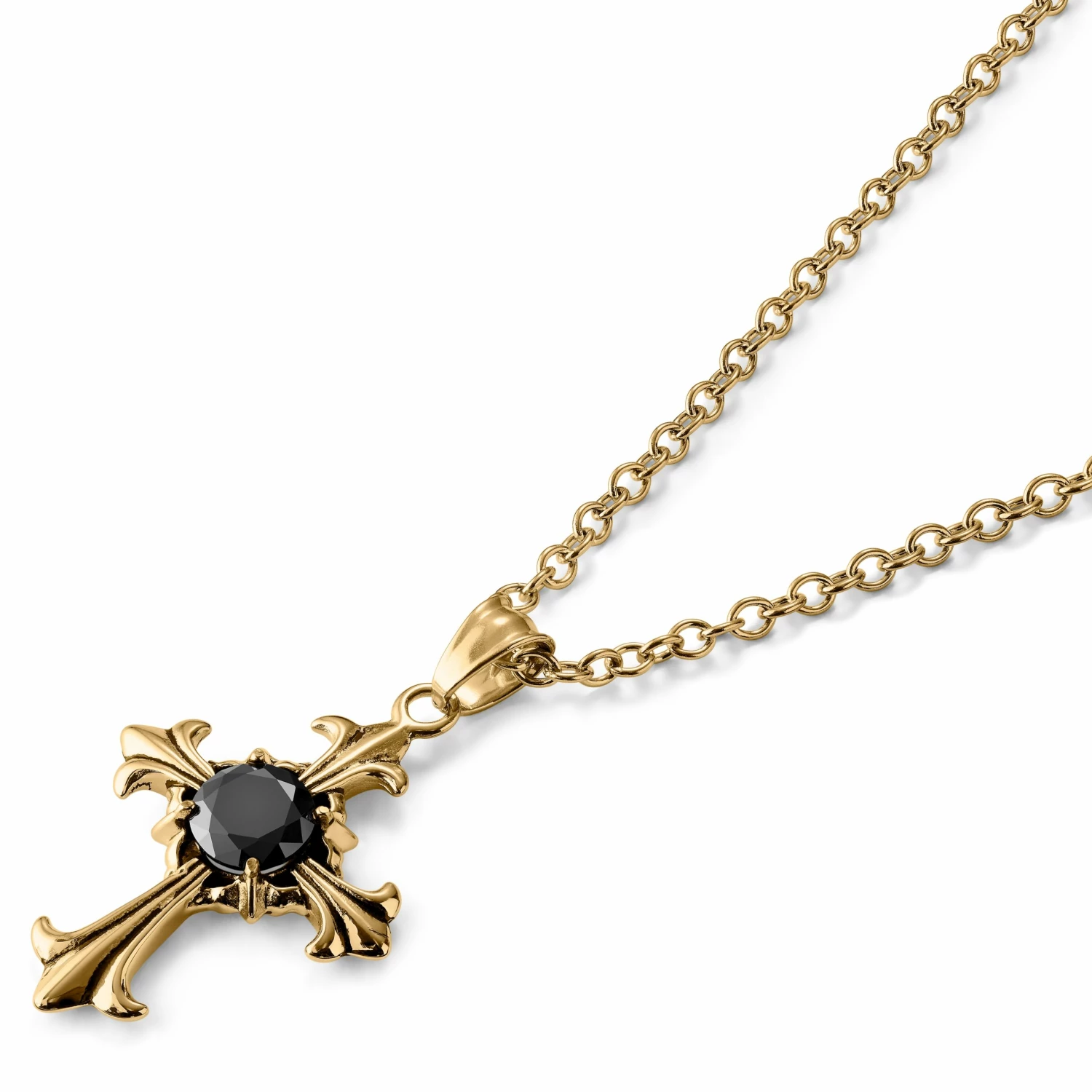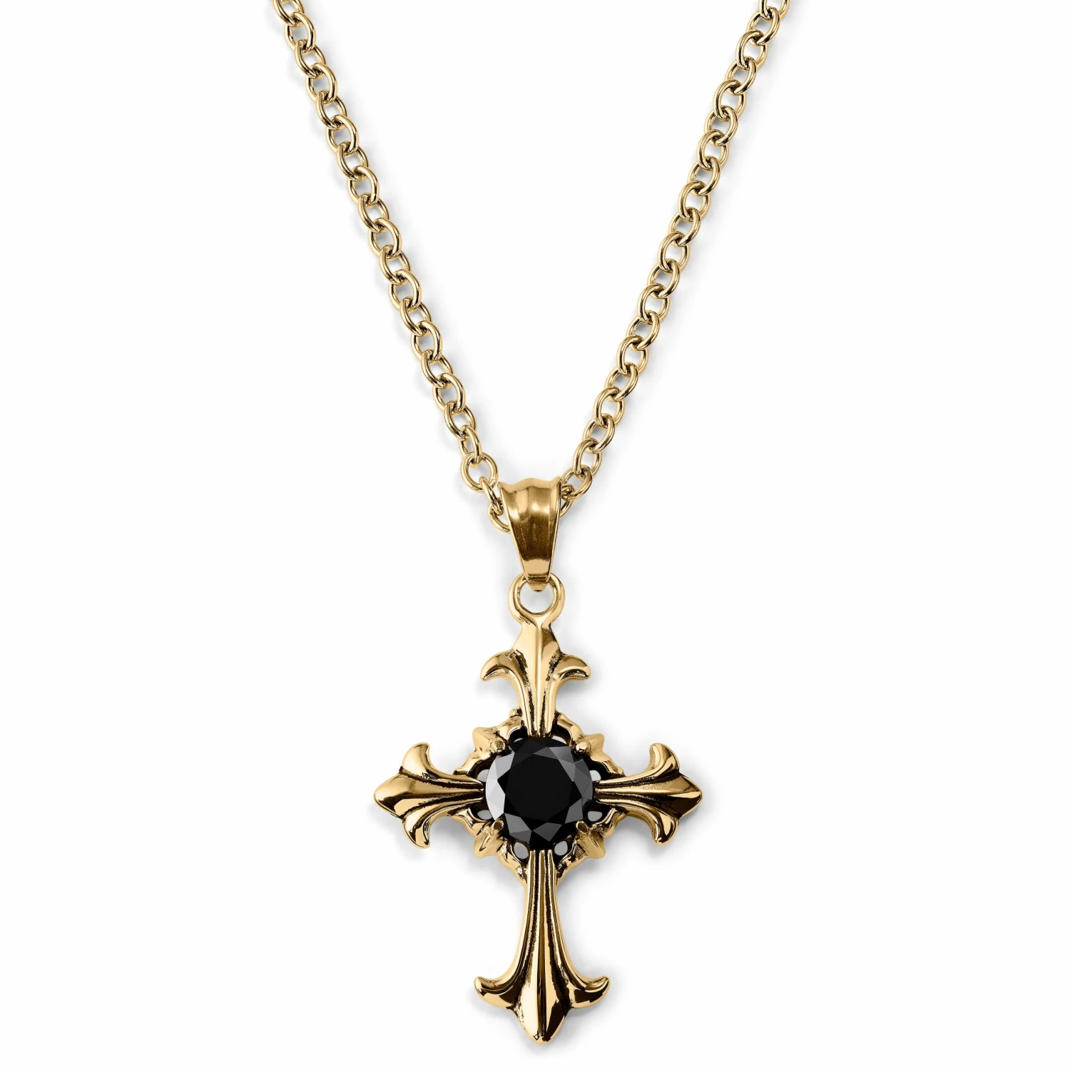 Un pur style gothique couleur or, une pierre de zircone qui attire la lumière et une chaîne de longueur réglable rendent ce collier pour hommes absolument inoubliable.