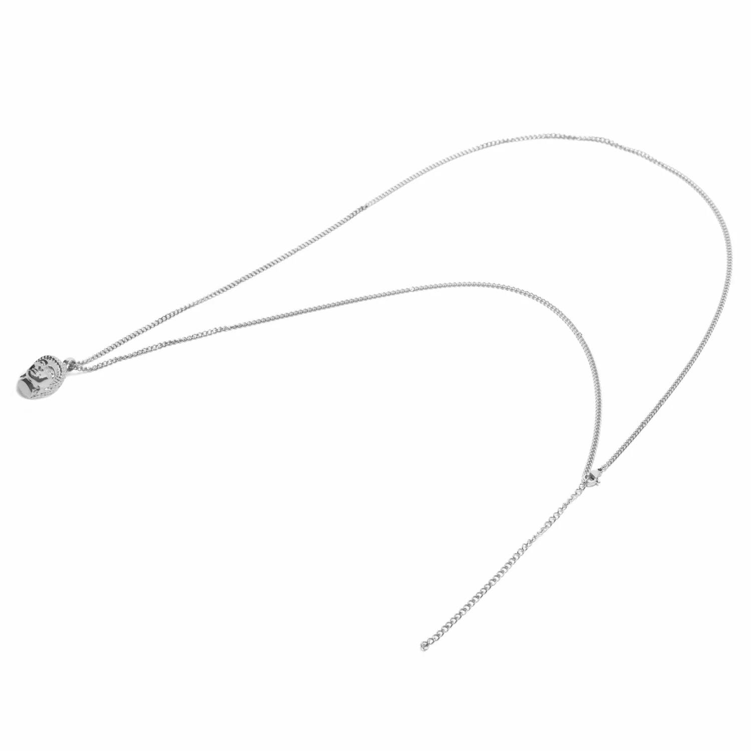 Fabriqué en acier chirurgical argenté poli à l’extrême, ce pendentif est suspendu à sa chaîne assortie, réglable en longueur.