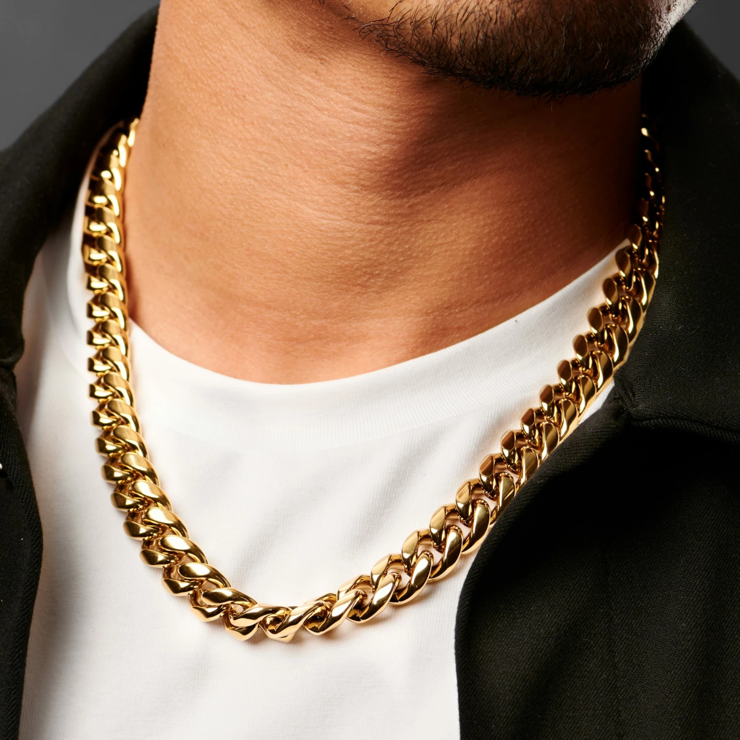 Fabriqué en acier inoxydable doré et poli, ce collier a été conçu pour l’homme qui veut faire passer son style vestimentaire au niveau supérieur.