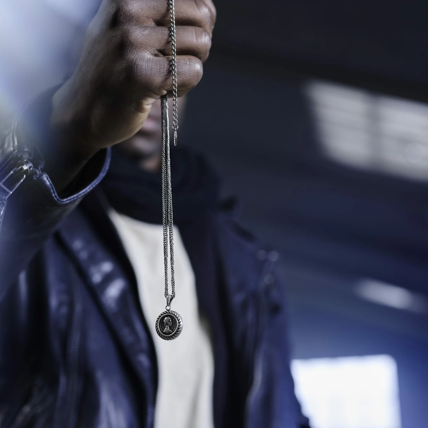 Ce pendentif en acier vintage pour homme a été fabriqué en acier inoxydable chirurgical, tout comme la double chaîne gourmette à laquelle il est suspendu. La double chaîne vous offre l’assurance que même si un maillon venait à se briser, le collier ne tomberait pas, car il serait soutenu par le maillon suivant sur la chaîne. Son fermoir à mousqueton durable et sa chaîne de longueur ajustable vous permettront de régler de manière précise où le pendentif tombera sur votre poitrine.