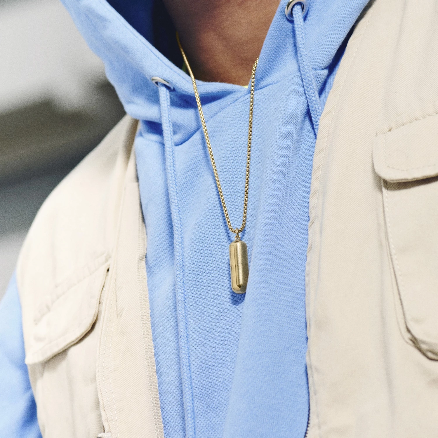 Transportez vos coordonnées ou un message personnel sur un petit morceau de papier que vous pourrez enrouler et glisser au sein de cette cartouche en métal doré. Le collier pour homme parfait pour donner votre numéro à de séduisantes inconnues – et ne jamais vous faire oublier.