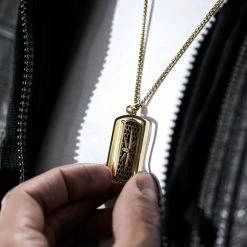 Lucleon Collier à pendentif croix latine en acier doré & poli